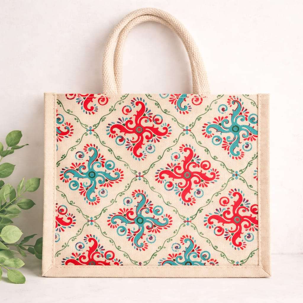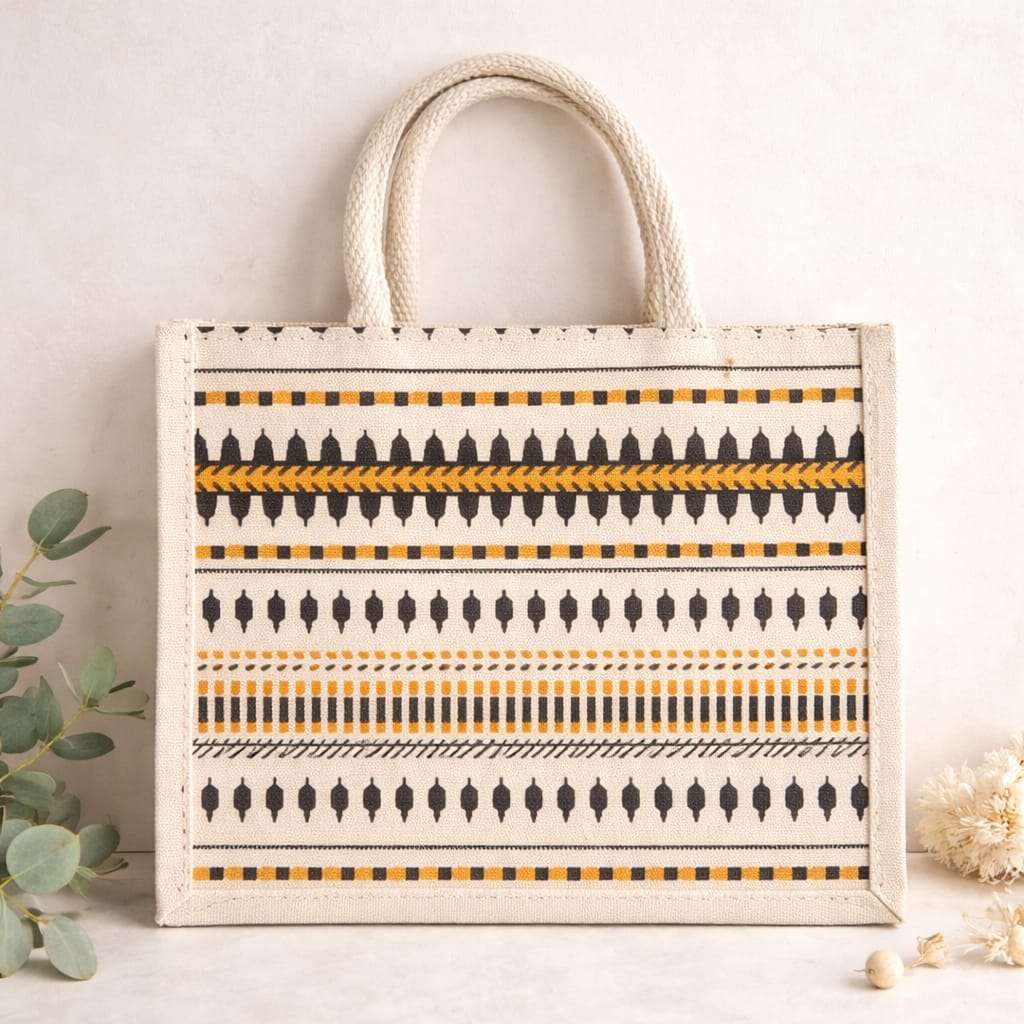 Our Terra Tote jute bags are crafted from sturdy natural jute and designed with eye-catching prints that blend style with sustainability. Perfect for everyday errands, festive gifting, wedding return favors, or corporate hampers, these totes are both practical and aesthetic.